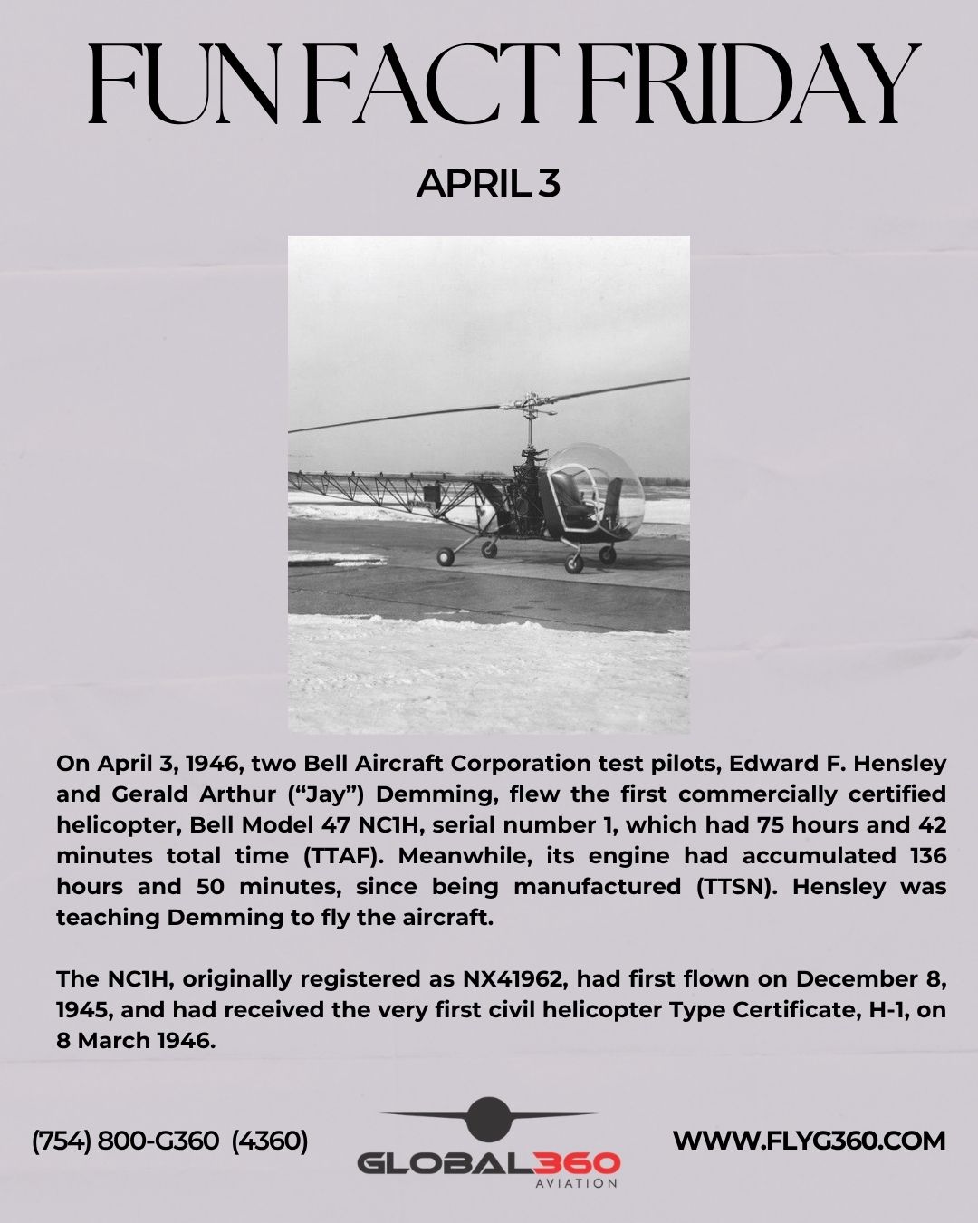 Flight of the First Commercially Certified Helicopter Bell Model 47 NC1H
